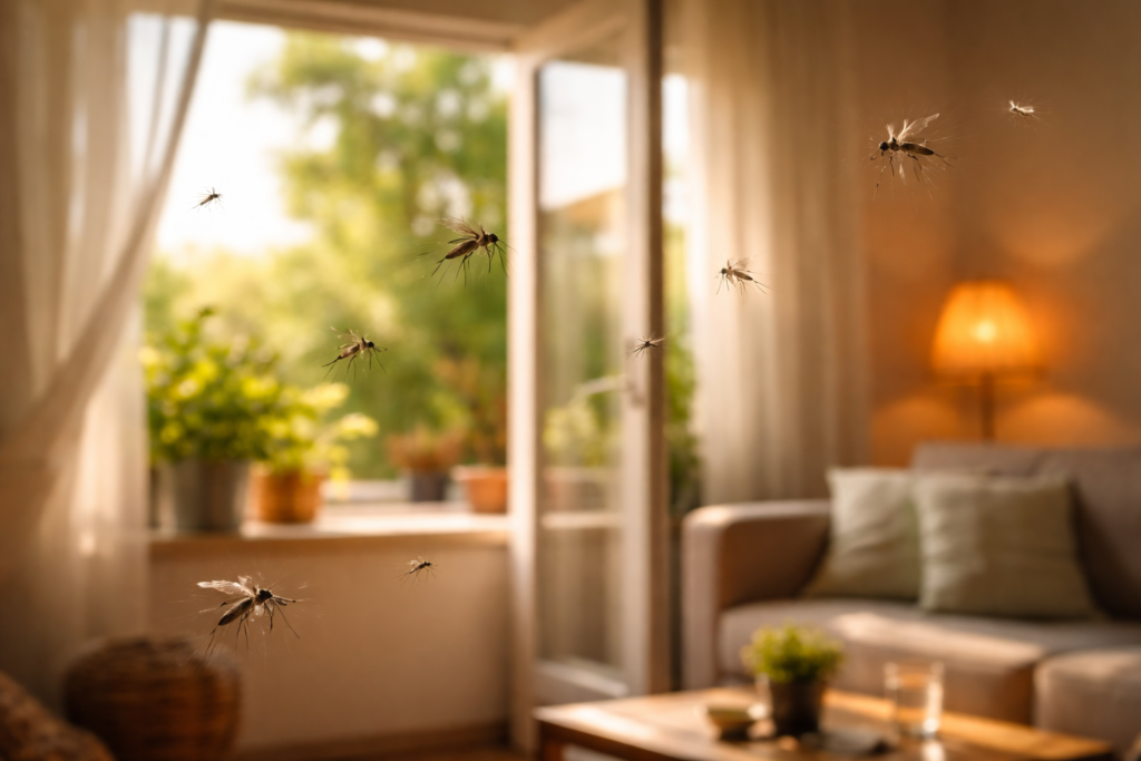 Traducido al día a día: muchas casas pierden la batalla contra los mosquitos por detalles muy básicos. Ventanas abiertas sin protección al atardecer, luces encendidas, zonas de paso fáciles, cero barrera física y cero control del aire. El resultado no suele ser una invasión dramática, sino algo peor: esa sensación de que siempre aparece alguno, de que nunca terminas de descansar bien y de que tu casa deja de sentirse cómoda precisamente cuando más la necesitas ventilada.