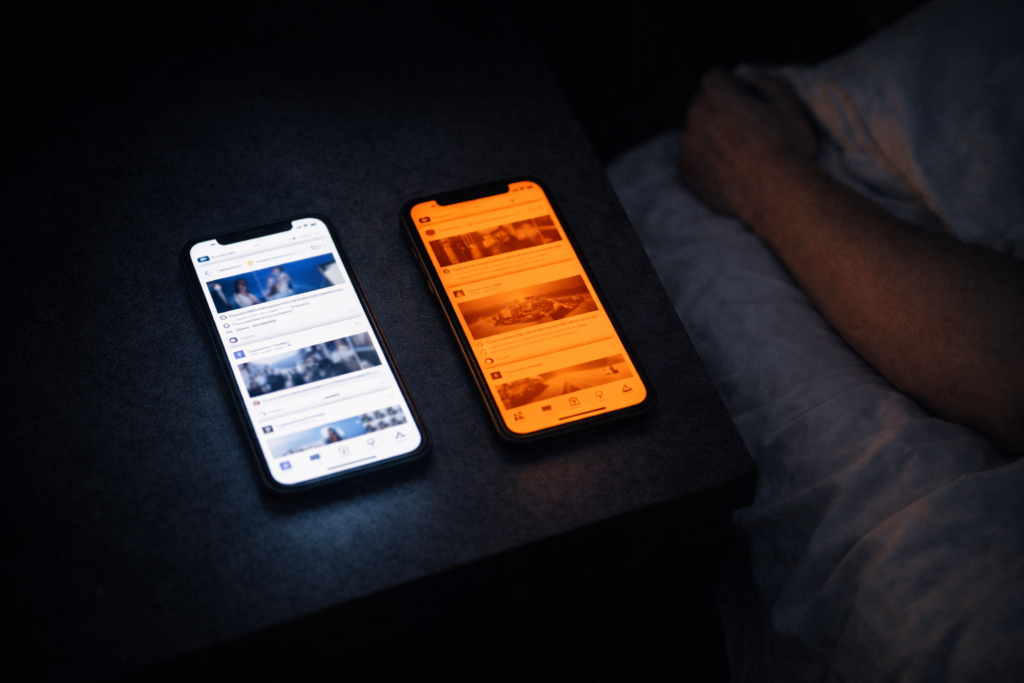 El filtro de luz azul no elimina la estimulación mental del contenido. No elimina las notificaciones. No elimina el brillo de la pantalla que sigue siendo suficiente para interferir con la melatonina a una distancia de 30 centímetros de tu cara.