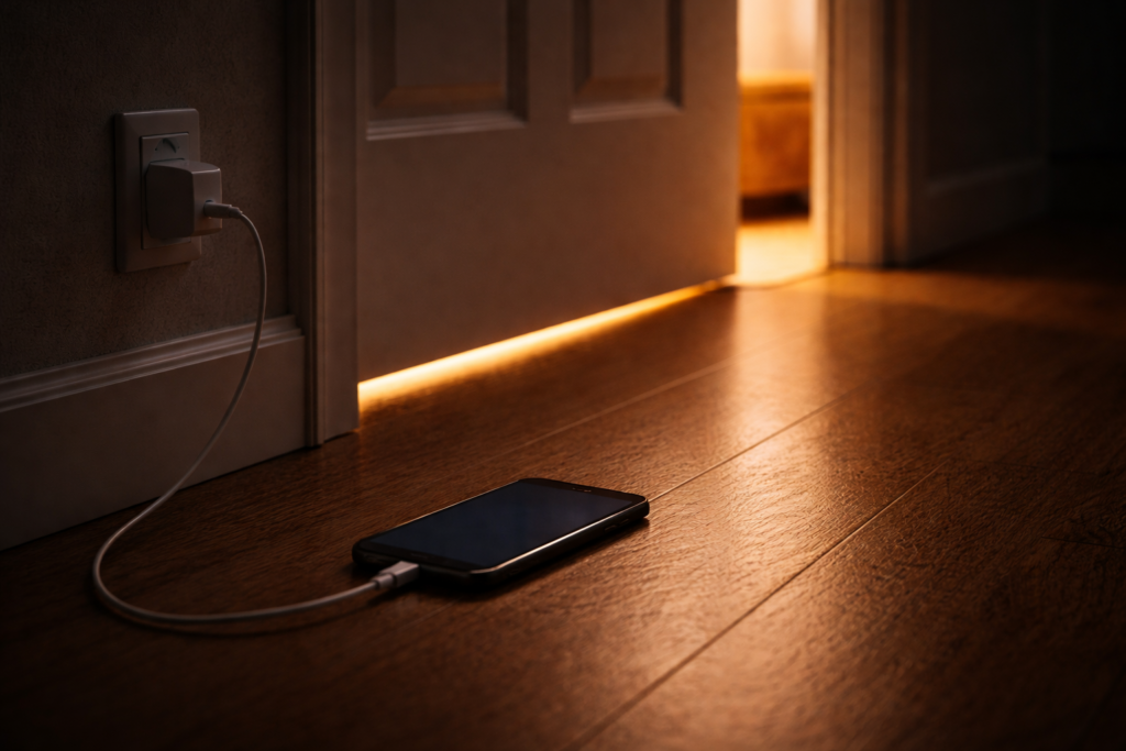 Si el móvil está en la mesilla, volverás a cogerlo. La tentación es demasiado fuerte cuando está a 30 centímetros. La solución es eliminar la tentación, no resistirla.