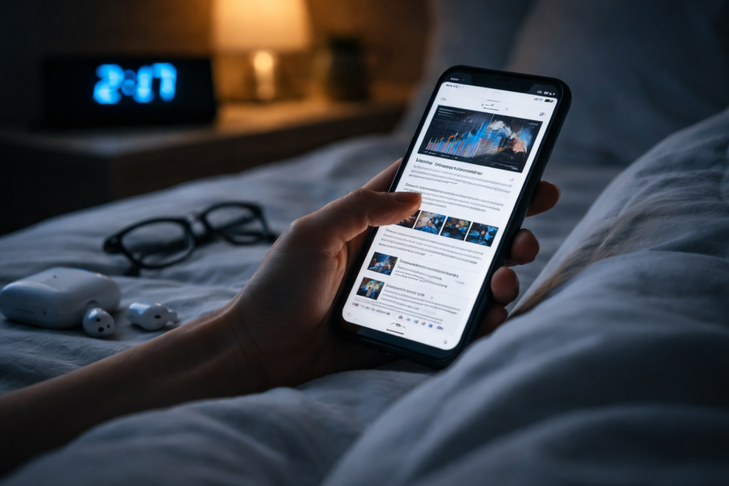 Lo interesante para tu web está en otra parte: cada vez más gente mete el móvil en la cama, y luego intenta resolver sus noches malas pensando solo en el colchón. A veces el colchón influye, claro. Pero en 2026 hay un patrón bastante evidente: una parte del problema se está jugando en la última media hora del día, justo cuando mucha gente se pone a mirar notificaciones, vídeos, noticias o mensajes como si eso no contara.