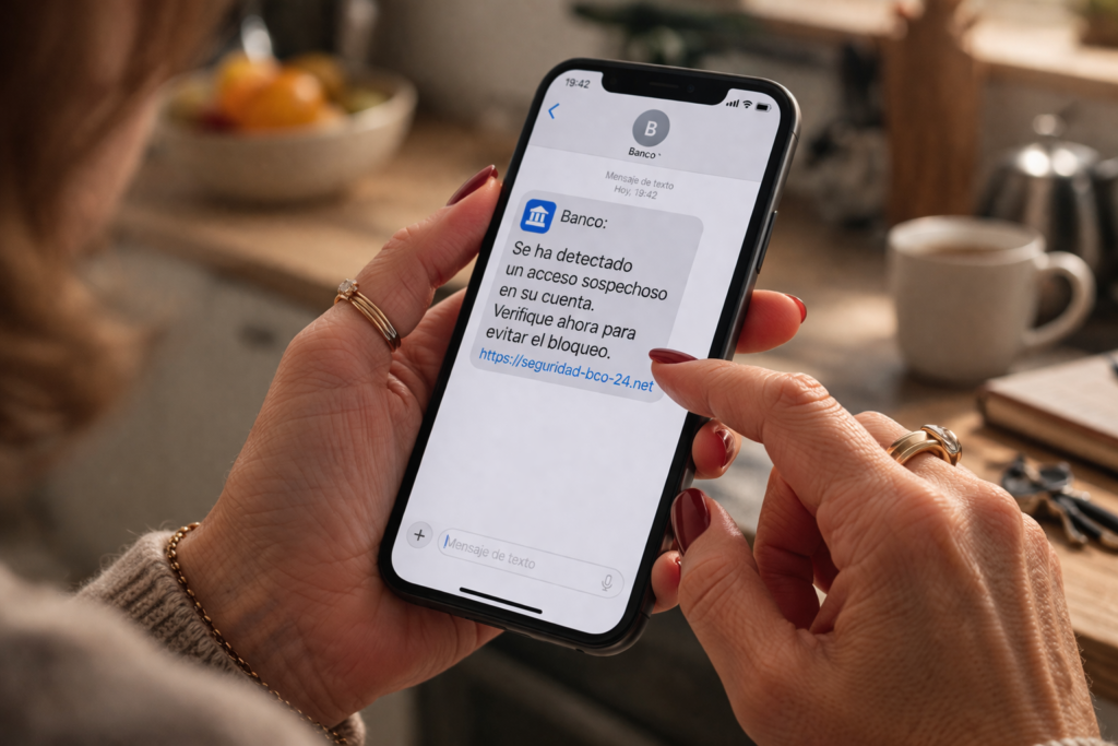 Lo que hace especialmente peligroso el smishing es que en el móvil no se ve fácilmente la URL completa del enlace. En el ordenador pasas el ratón y ves a dónde lleva el enlace. En el móvil no puedes hacer eso de forma tan directa.