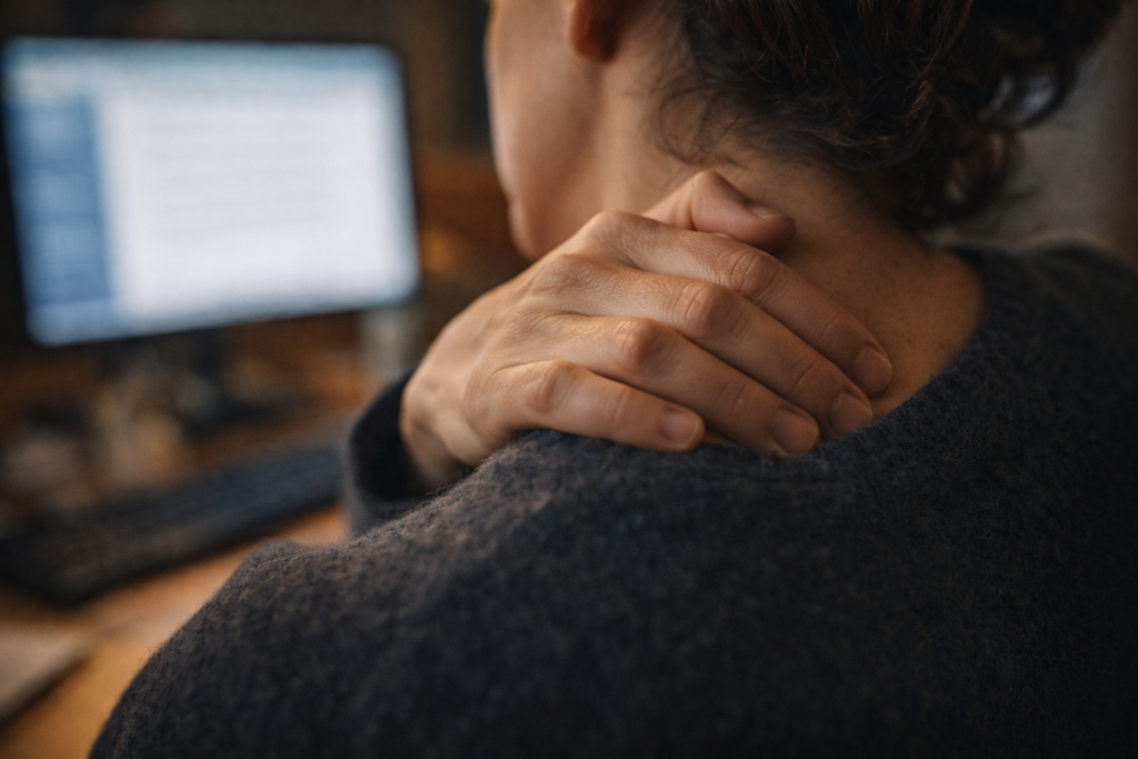 El dolor de cuello que llevas meses tratando con fisioterapia sin que desaparezca del todo. La contractura de los trapecios que siempre vuelve. La mandíbula apretada que a veces notas por la noche. La presión en el pecho que el médico ha descartado que sea cardíaca.